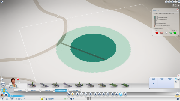 道路を削ったのが↓。人口103万、渋滞そこそこ(通常モード、単マップ、リサイクル込みで黒字)